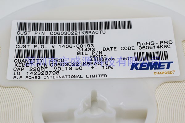 產品名稱:KEMET陶瓷電容 0603 50V 220PF C0603C221K5RACTU